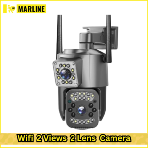 Marline Wi-Fi Dual-Lens PT Security Camera is a wireless surveillance camera with two lenses in one unit and pan-tilt (PT) motion capability. It uses Wi-Fi to connect to your home or business network, so you can monitor live video and alerts remotely on your smartphone or computer without extra cables. Dual lenses let it capture wide-area views and detailed close-ups at the same time or switch between them for better coverage.