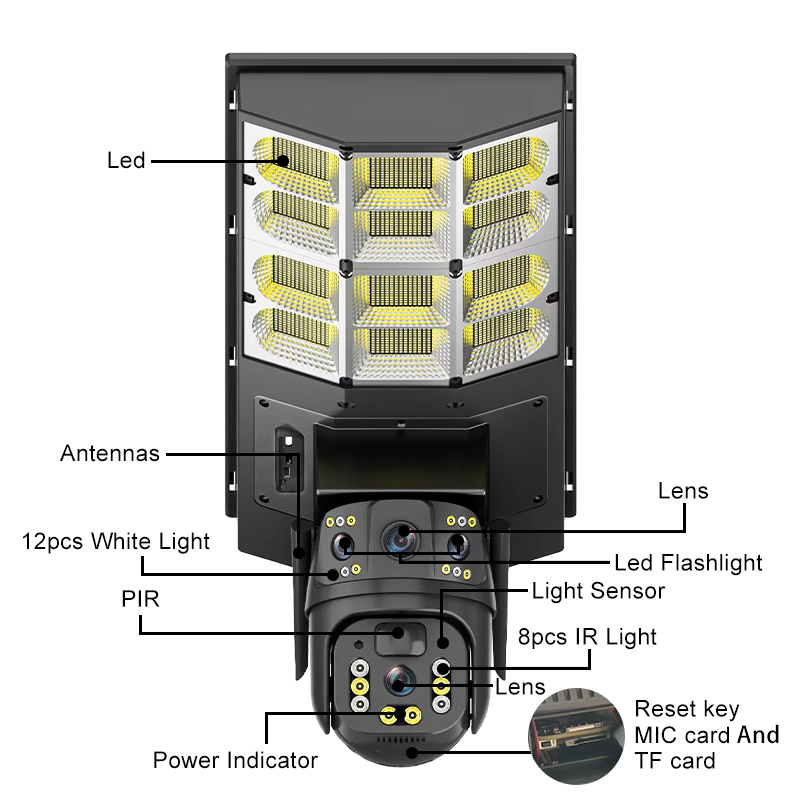 Marline IP66 4G Solar Powered Lamp+ Camera Triple Lens Solar Camera